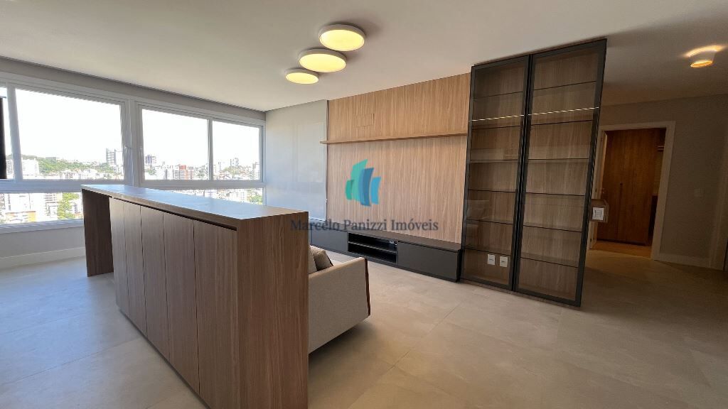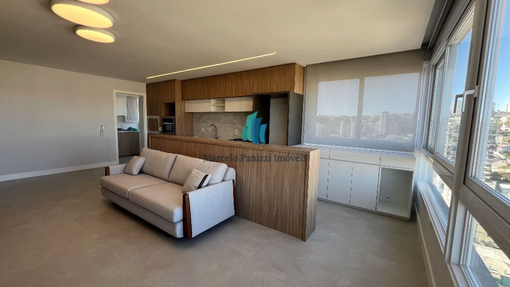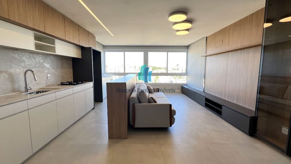Apartamento novo e mobiliado, com 104,52 m² de área privativa, TRÊS dormitórios (sendo um suíte) e duas vagas de garagem.