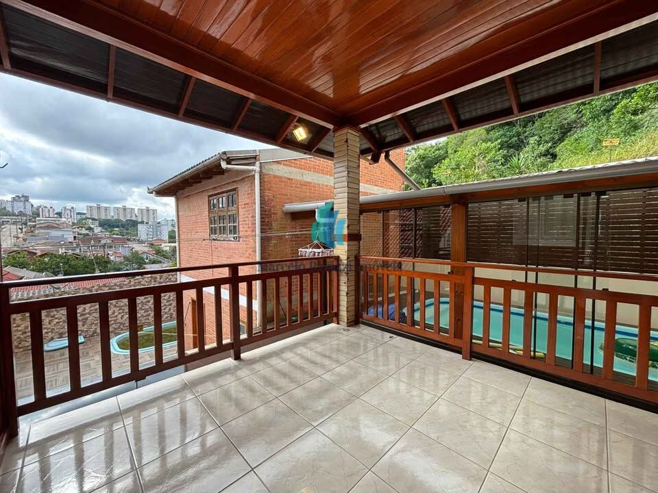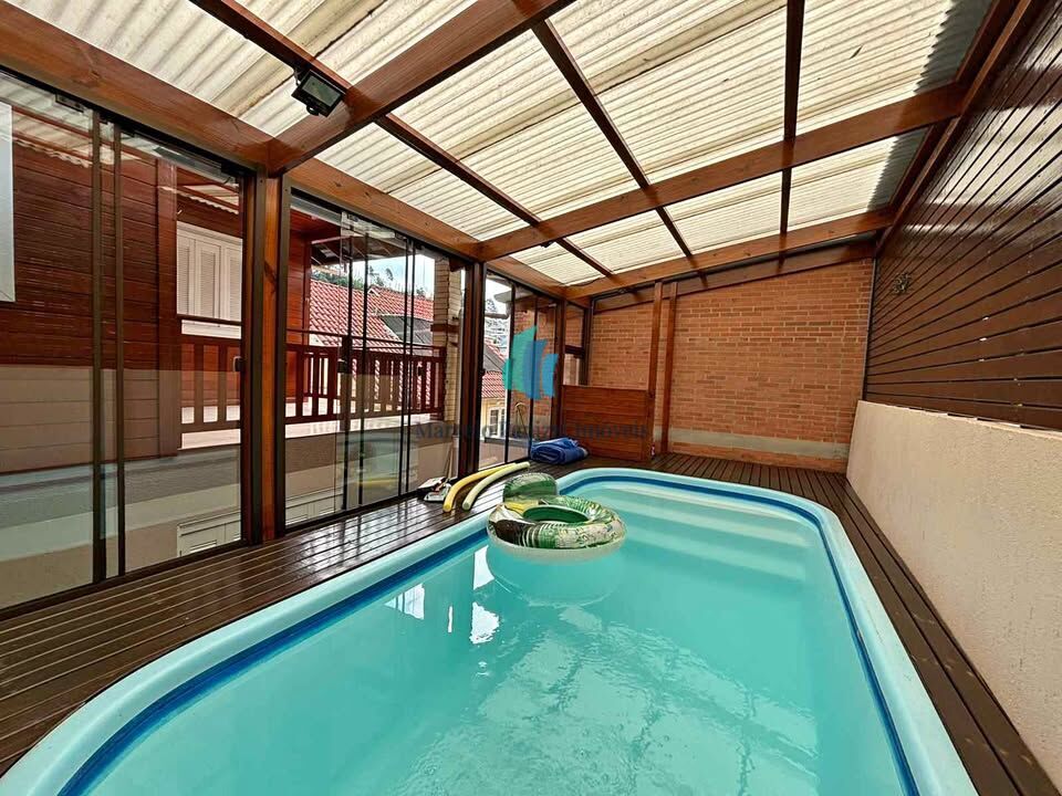 Nos fundos do terreno, o imóvel oferece um espaço de lazer completo, com piscina fechada e aquecimento por placas solares e mais um banheiro auxiliar.